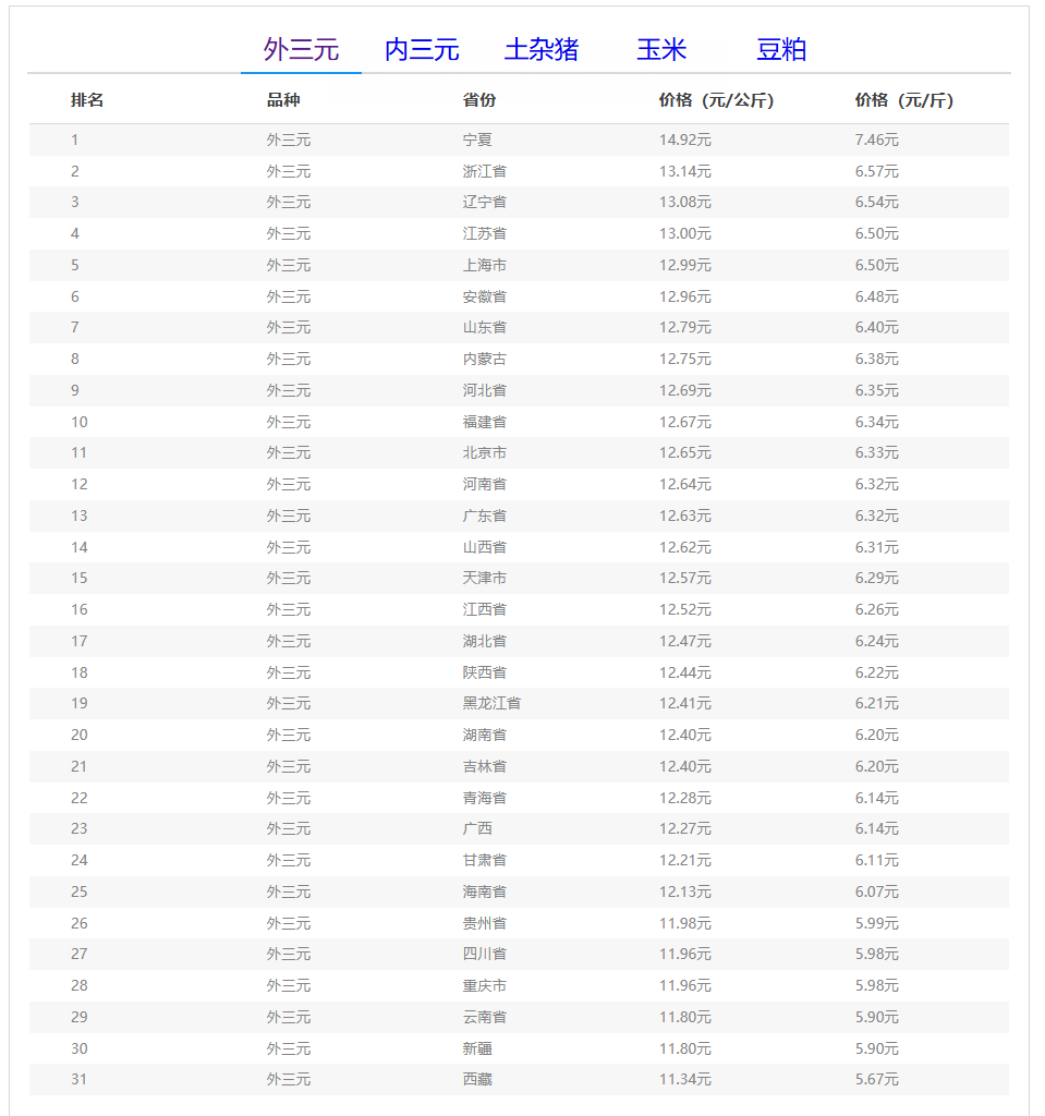 (备注:本文生猪价格及猪价特指活猪价格,并非是消费市场的猪肉价格,外三元、内三元、土杂猪则为生猪品种。)