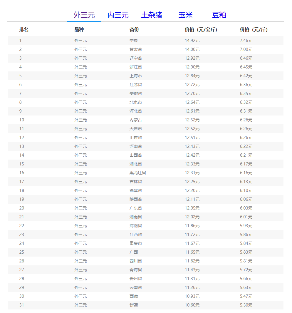 2026年02月07日-中国养猪网生猪(外三元)均价排行榜