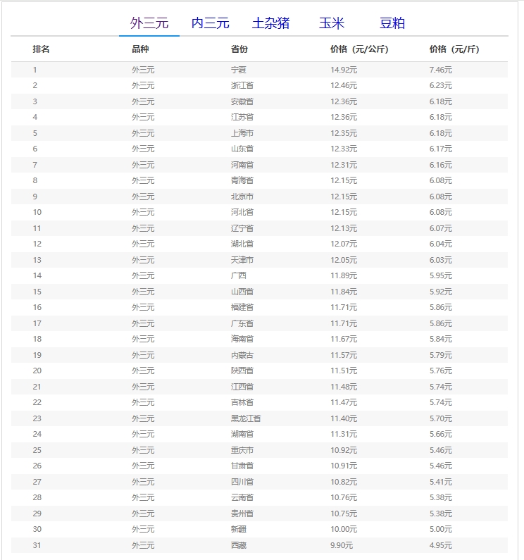 (备注:本文生猪价格及猪价特指活猪价格,并非是消费市场的猪肉价格,外三元、内三元、土杂猪则为生猪品种。)