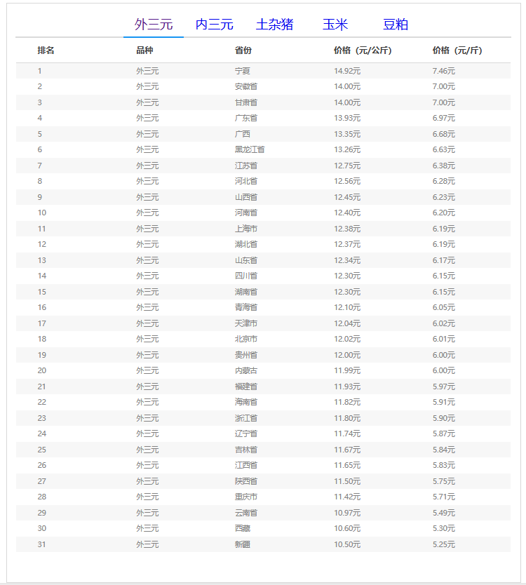(备注:本文生猪价格及猪价特指活猪价格,并非是消费市场的猪肉价格,外三元、内三元、土杂猪则为生猪品种。)