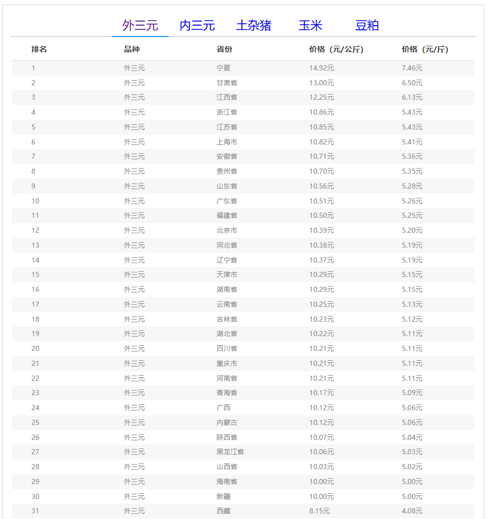 (备注:本文生猪价格及猪价特指活猪价格,并非是消费市场的猪肉价格,外三元、内三元、土杂猪则为生猪品种。)
