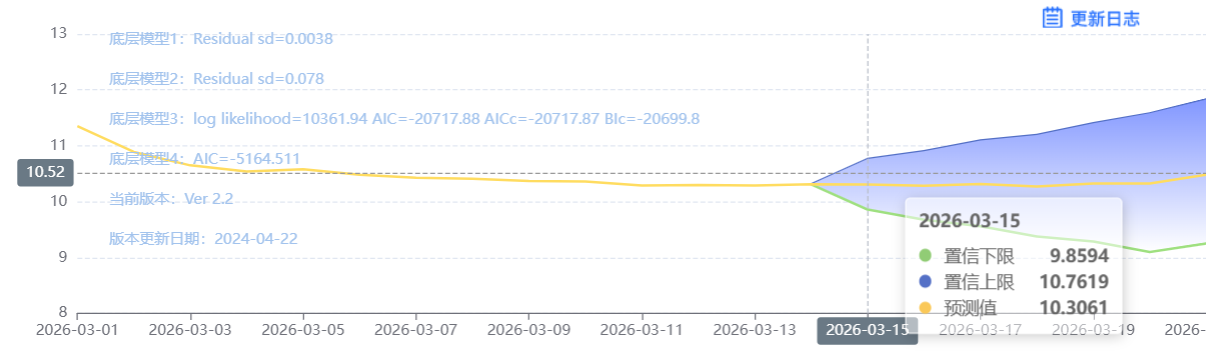 玄田算法是由项目课题组团队原创的非经典逻辑数值聚合理论和不确定性预测方法,构建了基于一致模算子的生猪价格预测模型。该模型采用的聚合函数及一致模相关理论与方法已获得多项国家自然科学基金和省级自然科学资金资助,并获得多项省级自然科学奖奖项。03月15日预测猪价为9.8594,置信区间在10.7619--10.061之间。03月16日预测猪价为10.2843;03月17日预测猪价为10.3164。