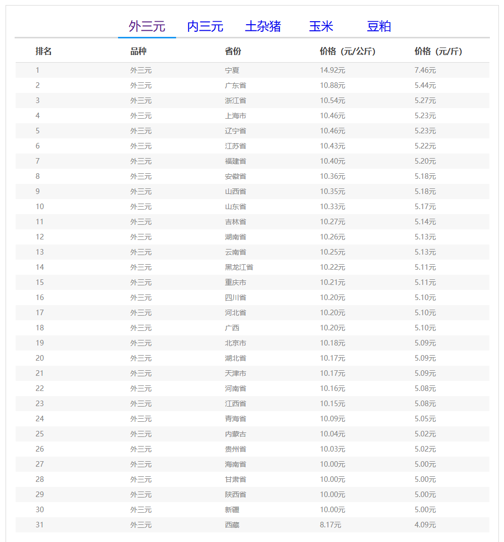 (备注:本文生猪价格及猪价特指活猪价格,并非是消费市场的猪肉价格,外三元、内三元、土杂猪则为生猪品种。)