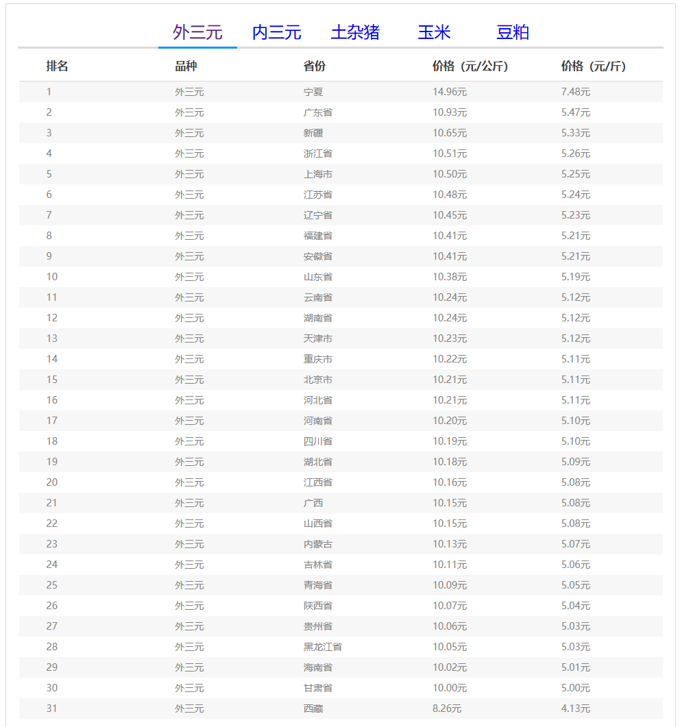 2026年03月17日-中国养猪网生猪(外三元)均价排行榜
