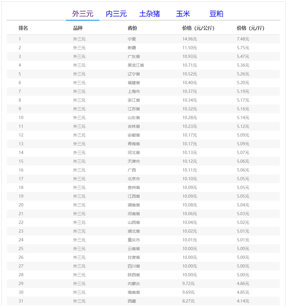 (备注:本文生猪价格及猪价特指活猪价格,并非是消费市场的猪肉价格,外三元、内三元、土杂猪则为生猪品种。)