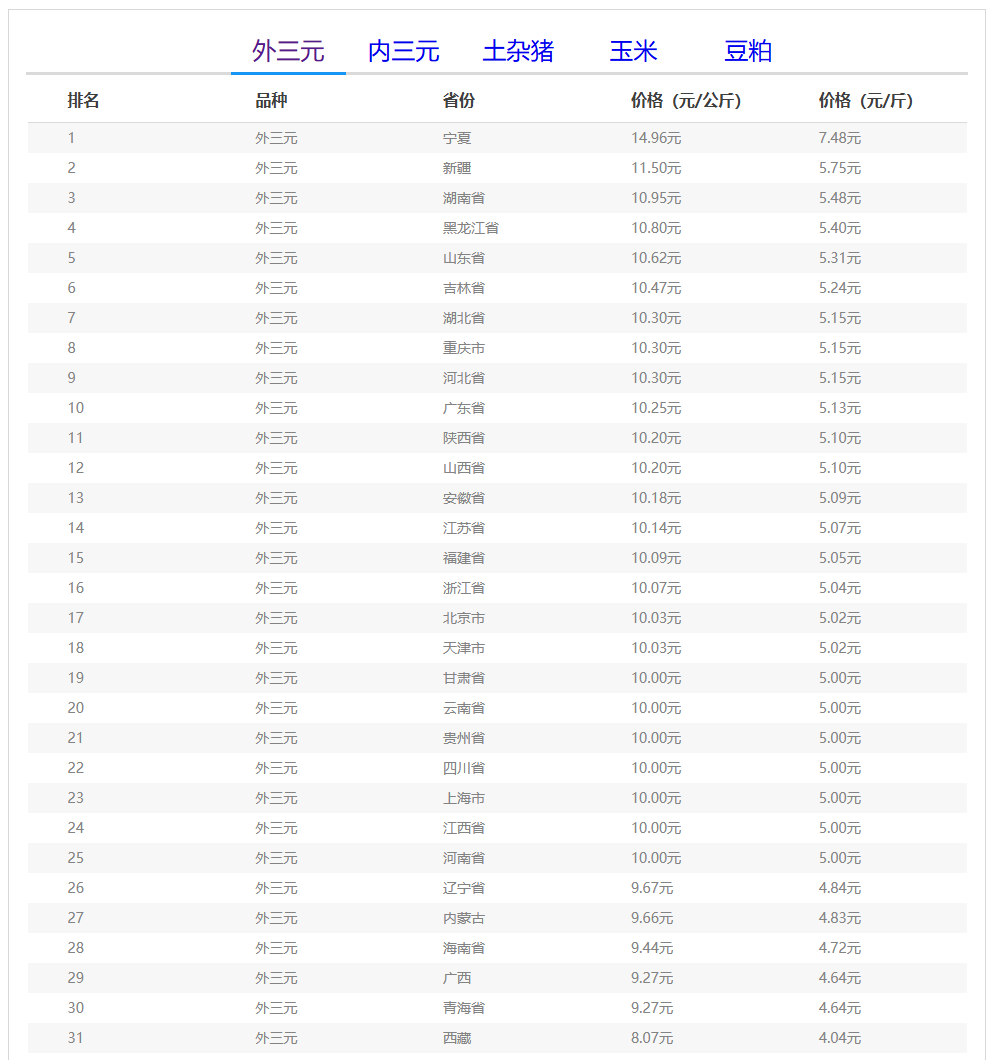 (备注:本文生猪价格及猪价特指活猪价格,并非是消费市场的猪肉价格,外三元、内三元、土杂猪则为生猪品种。)