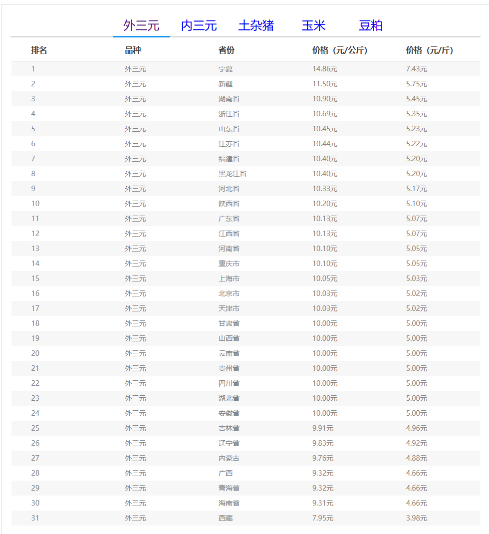 (备注:本文生猪价格及猪价特指活猪价格,并非是消费市场的猪肉价格,外三元、内三元、土杂猪则为生猪品种。)
