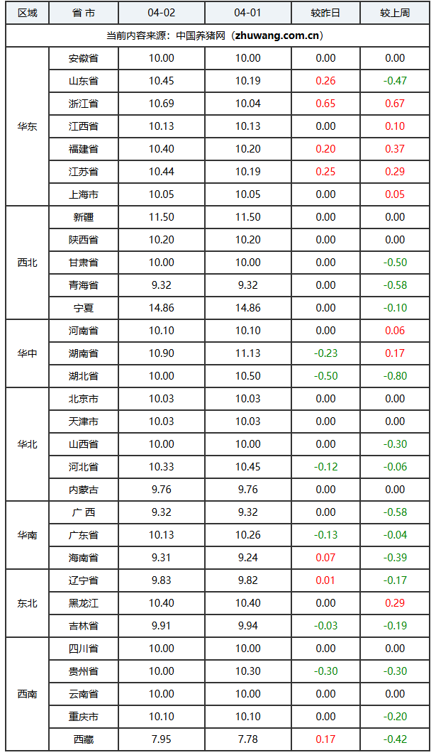 2026年04月02日-中国养猪网生猪(外三元)均价涨跌表