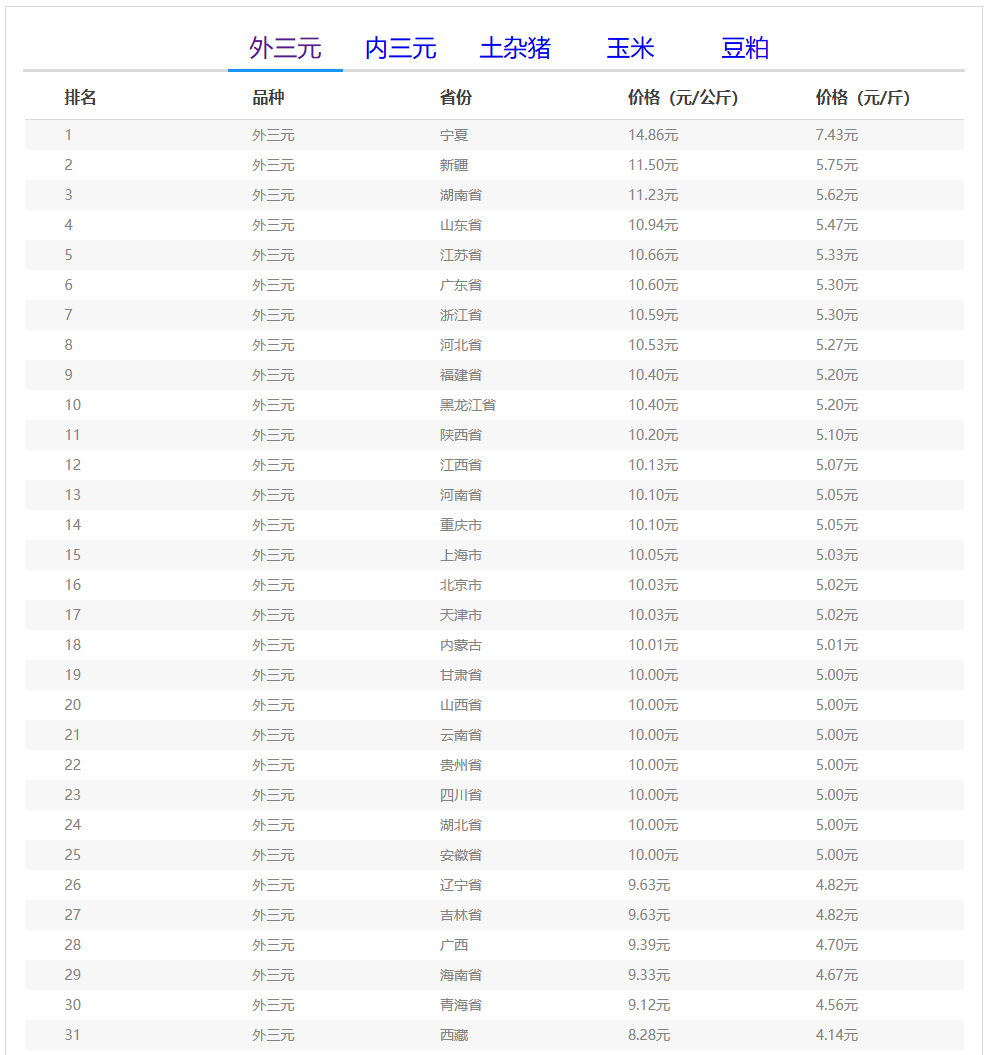(备注:本文生猪价格及猪价特指活猪价格,并非是消费市场的猪肉价格,外三元、内三元、土杂猪则为生猪品种。)