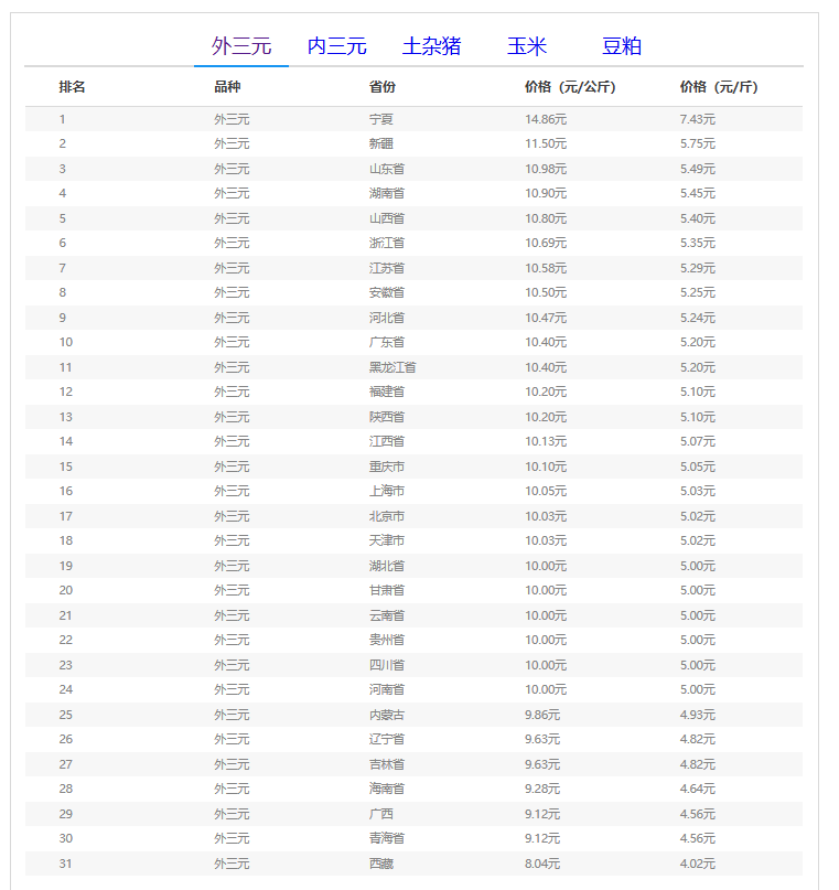(备注:本文生猪价格及猪价特指活猪价格,并非是消费市场的猪肉价格,外三元、内三元、土杂猪则为生猪品种。)