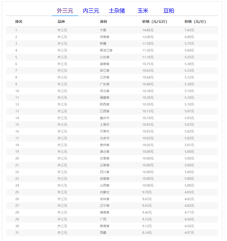 (备注:本文生猪价格及猪价特指活猪价格,并非是消费市场的猪肉价格,外三元、内三元、土杂猪则为生猪品种。)