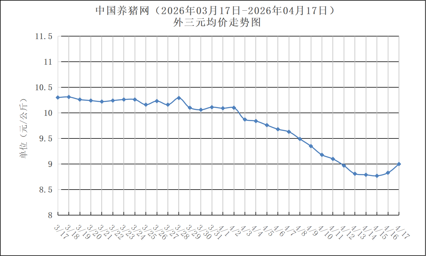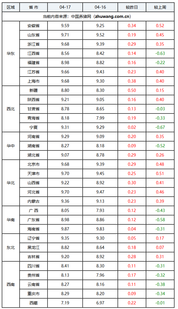 2026年04月17日-中国养猪网生猪(外三元)均价涨跌表