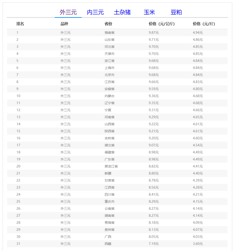 (备注:本文生猪价格及猪价特指活猪价格,并非是消费市场的猪肉价格,外三元、内三元、土杂猪则为生猪品种。)