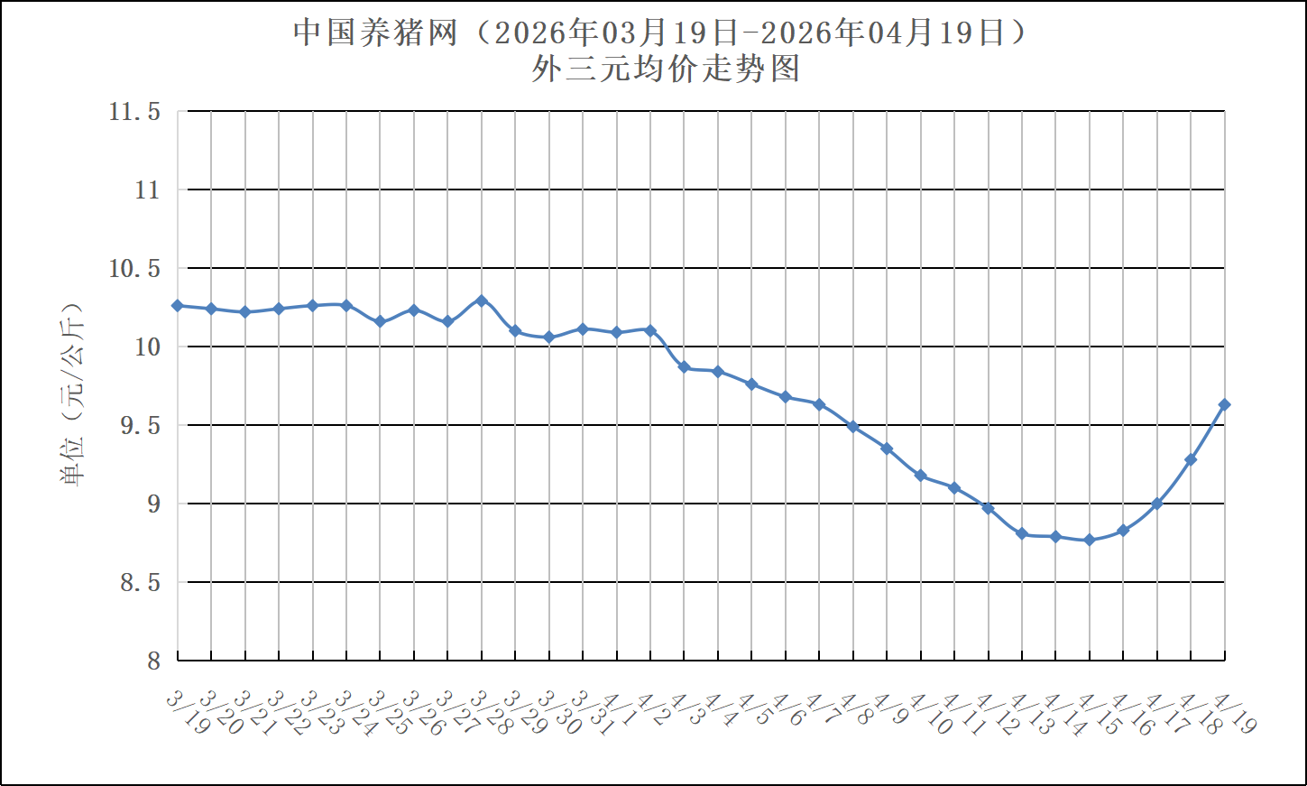 2026年04月19日中国养猪网生猪(外三元)均价走势图