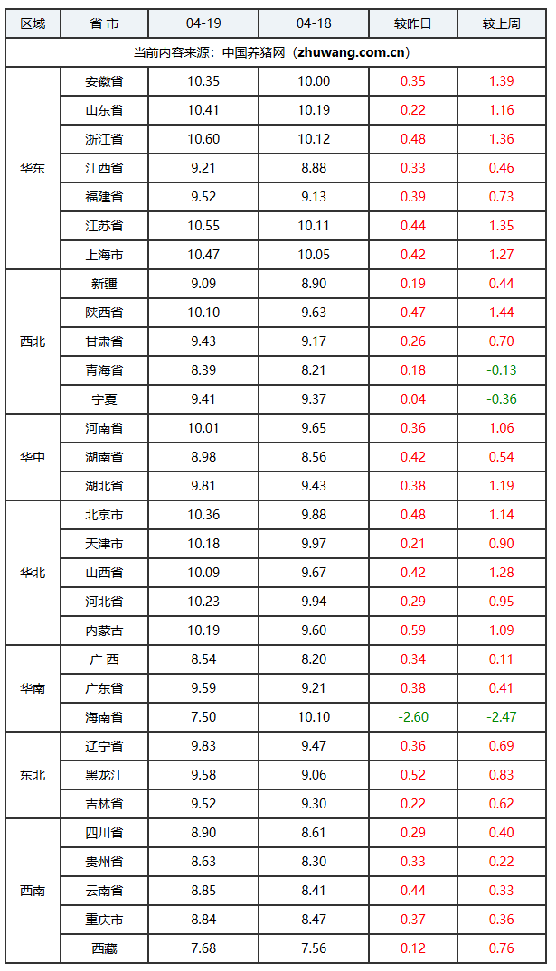 2026年04月19日-中国养猪网生猪(外三元)均价涨跌表