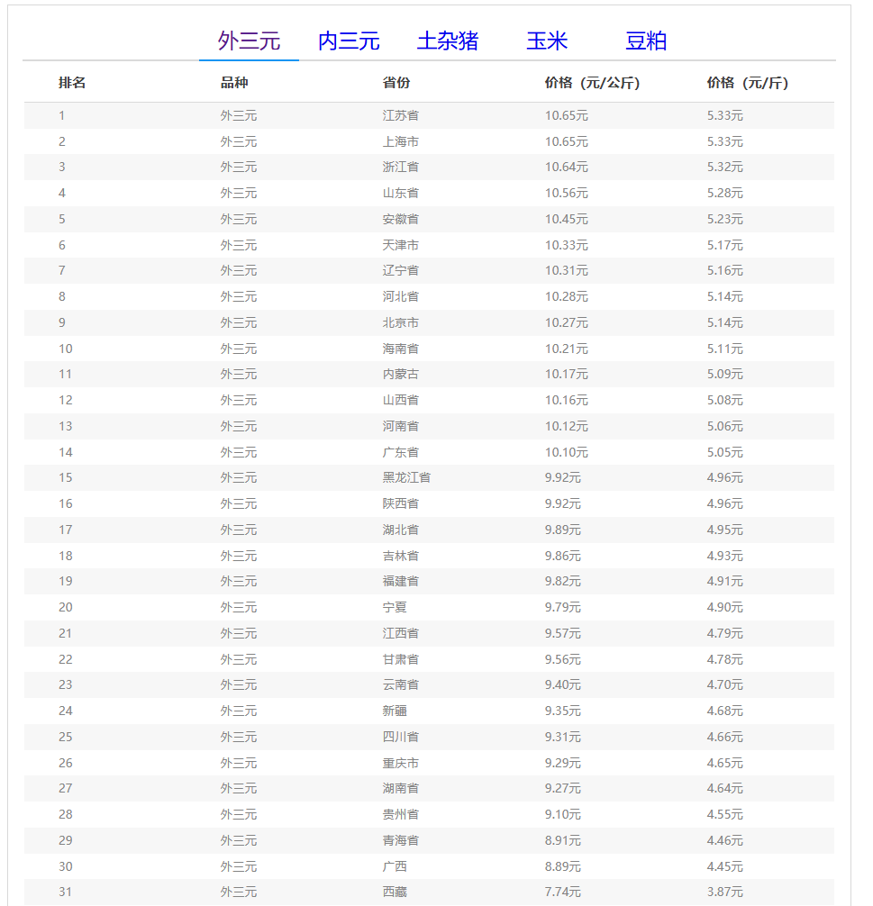 (备注:本文生猪价格及猪价特指活猪价格,并非是消费市场的猪肉价格,外三元、内三元、土杂猪则为生猪品种。)