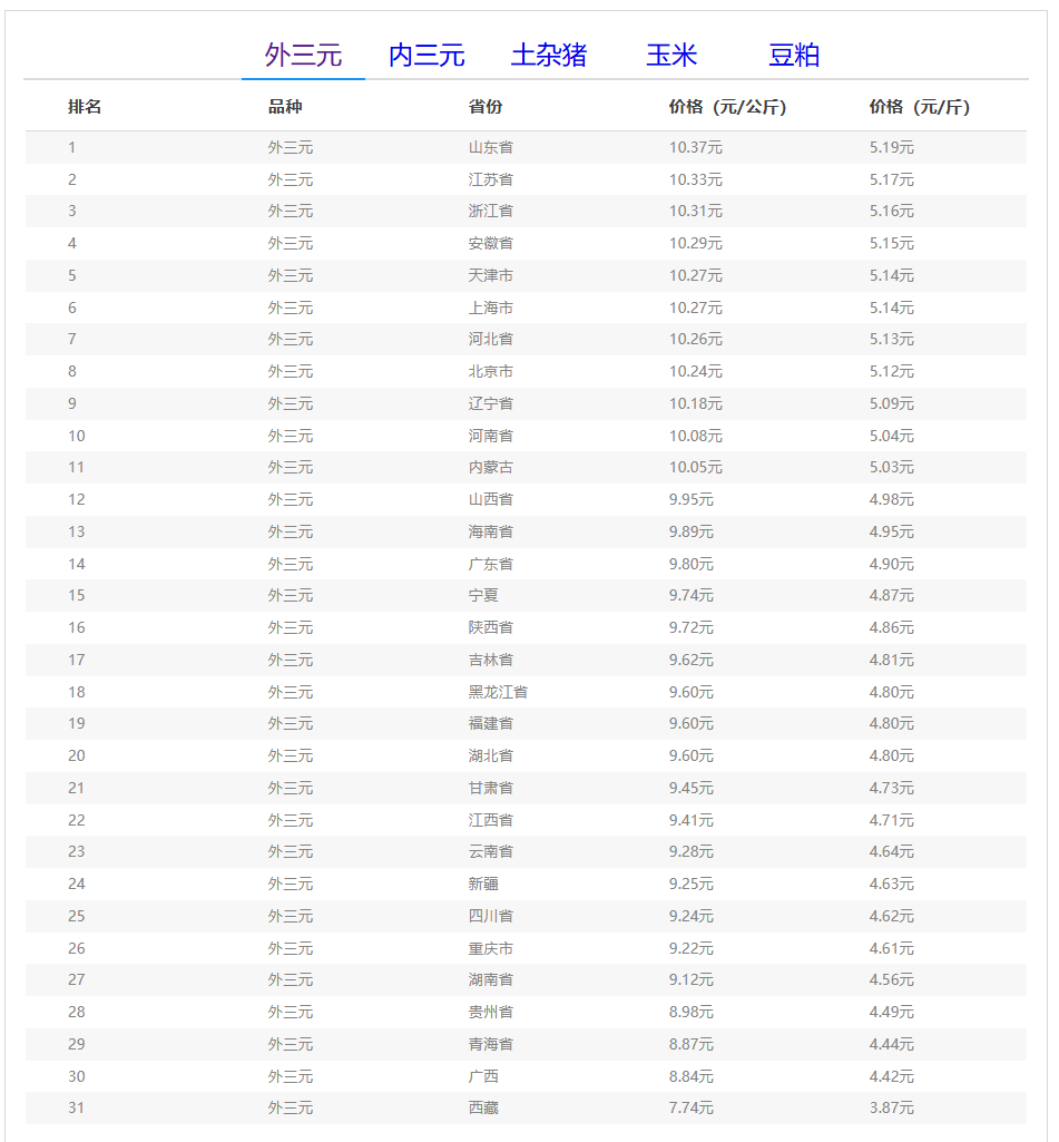 (备注:本文生猪价格及猪价特指活猪价格,并非是消费市场的猪肉价格,外三元、内三元、土杂猪则为生猪品种。)